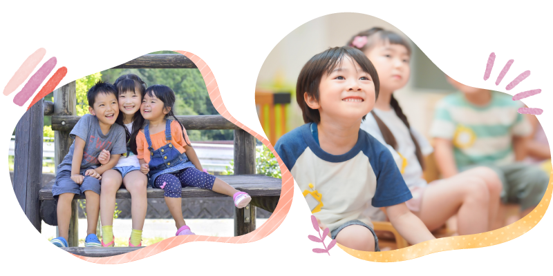 幼稚園は、 このような発達を踏まえて、初めての集団生活の中で一人一人の良さや可能性を伸ばしていくところです。